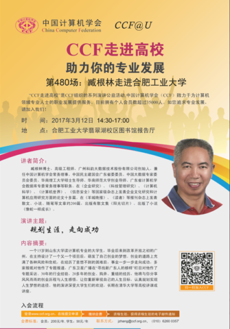 一个15岁到山东大学读计算机专业的大学生,毕业后来到改革开放之初的广州,在主持设计了一个又一个项目后,萌发了自己创业的梦想。创业的道路上充满了各种风险和危机,在经历了意想不到的困难后,事业一步一步走向成功,多家报纸对他的专题报道,广东卫星广播在“寻找新广东人的榜样”栏目对他作了专题采访。30年的行业经验,20多年的创业、购并、重组的经历,他将与你分享风风雨雨的创业历程和人身感悟,让你重新审视自己的人生目标,认真规划实现人生梦想的途径。本次报告是CCF走进高校系列活动之一。