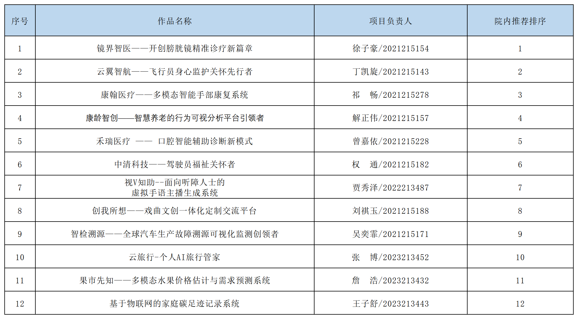 根据《关于举办2024年“挑战杯”大学生创业计划竞赛校内选拔赛的预通知》,学院团委分别开展了2024年“挑战杯”大学生创业计划竞赛院内选拔赛动员、预报名、作品申报等工作。本着公平、公正、公开的原则,经专家评审后,现将校内选拔赛院内作品遴选最终结果(排名按照评审结果顺序)公示如下: