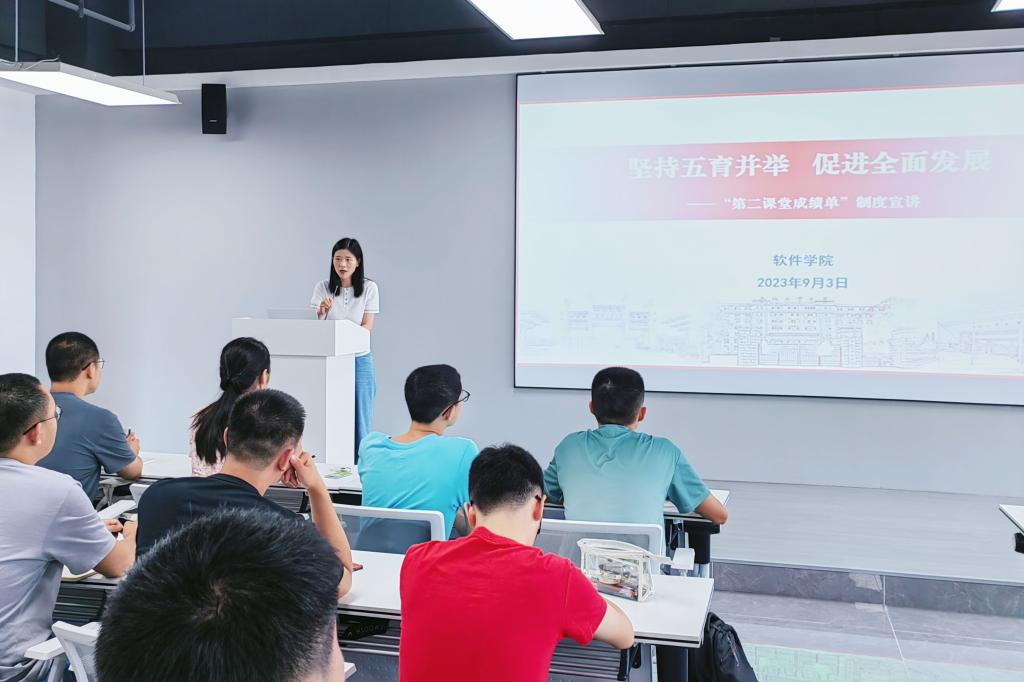 9月3日下午,beat365中文官方网站在翡翠湖校区科教楼B501开展“坚持五育并举 促进全面发展”第二课堂成绩单宣讲,学院学生工作办公室主任兼团委书记郑华担任主讲人,2023级全体新生参加。