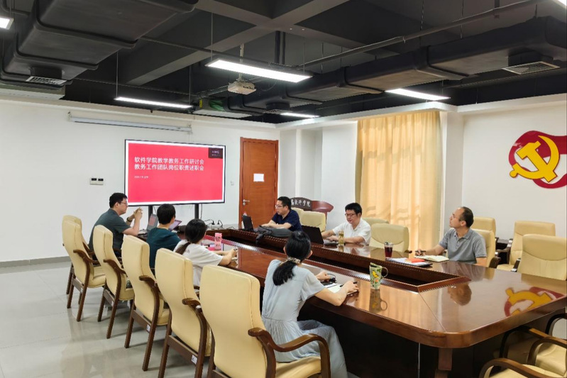 上午会议的内容为“教学教务工作研讨,教务工作团队岗位职责述职”,由全体教务工作小组人员参加,会议由副院长薛峰主持。薛峰指出,此次会议旨在教务小组成员能够明确自己的工作岗位职责,更好地提供规范化、制度化的管理服务。小组成员依次从岗位职责、本学期的工作总结以及如何提高工作效率方面进行述职汇报。最后,教务小组就现阶段教学管理中的问题,如毕业设计的选导师以及监考安排等进行讨论。