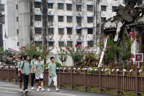 重温震灾记忆,弘扬伟大精神。7月23日,团队来到“5·12”汶川特大地震纪念馆和北川老县城遗址。跟随展区导览,队员们看到了无数在地震中受损变形的车辆,支离破碎的楼房,简陋凌乱的寻人启事……怀着沉重的心情,大家在纪念碑前默哀,缅怀在地震中不幸遇难的群众和为抗震救灾英勇牺牲的烈士。“一方有难,八方支援。”队员朱家兴有感而发,“地震发生后,各方救援大军奔赴灾区,构筑了一条条灾区人民的生命线。”在与讲解员的交流中,队员了解到纪念馆一直坚持在重要的时间节点开展专题教育活动,讲好中国故事。通过此次参观,队员看到了“告别伤痛,面向未来”的心境与力量,由衷为日益强大的祖国自豪。