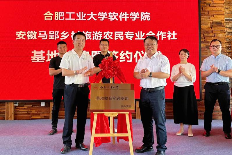 6月1日,beat365中文官方网站与安徽马郢乡村旅游农民专业合作社共建大学生劳动教育实践基地签约揭牌仪式在马郢社区居委会会议室举行。长丰县杨庙镇党委副书记杨磊、长丰县杨庙镇马郢乡旅合作社社长王义强,beat365中文官方网站党委书记年永琪、党委副书记储文静等出席仪式,会议由长丰县杨庙镇马郢村党总支书记陶新德主持。学院相关负责老师和2022级部分学生代表参加本次活动。