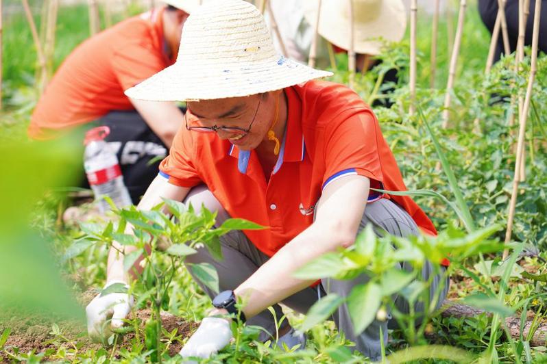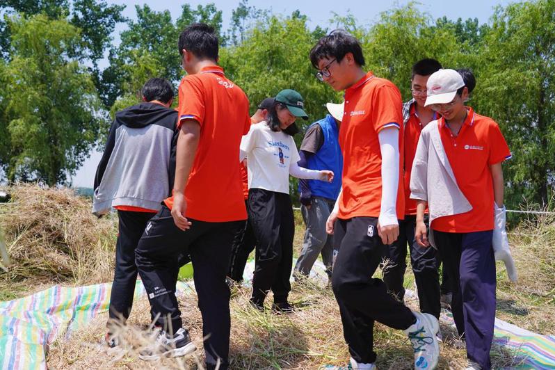 仪式结束后,与会师生共同前往劳动实践基地开展收割油菜、梨子套袋、除草等体验活动。