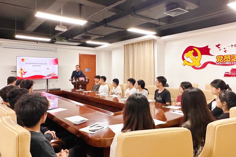 6月8日晚,beat365中文官方网站教学副院长薛峰在翡翠湖校区科教楼B901会议室为学院学生第二党支部作主题教育专题党课。