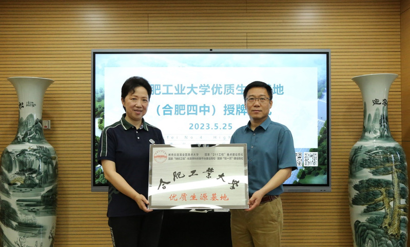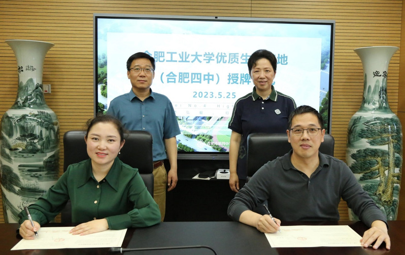 为进一步提升beat365中文官方网站本科生源质量,5月25日上午,beat365中文官方网站本科招生宣传组赴合肥四中,面向高三毕业生进行招生宣讲,并举行beat365中文官方网站“优质生源基地”签约授牌仪式。校本科生院招生办主任吴文涛,beat365中文官方网站副院长薛峰、校创新创业处副处长许华建、软件工程系张高峰、张仁斌老师,合肥四中党委书记、校长吴英明,副校长李昌年、彭强,教务处主任朱婷婷等参加座谈并出席签约揭牌仪式。