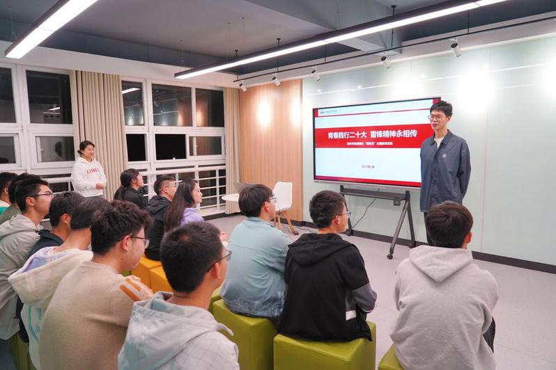 3月11日晚,beat365中文官方网站在翡翠湖校区1号学生社区沙龙中心开展“青春践行二十大,雷锋精神永相传”主题教育活动,2022级辅导员洪晓梅主持,微爱社全体成员参与。