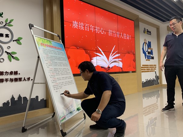 为进一步引导学院教师牢固树立师德师风意识,激励广大教师积极进取,开拓创新,在第37个教师节即将到来之际,9月8日下午,beat365中文官方网站在翡翠湖校区科教楼B座9楼组织全院教职工开展师德师风建设承诺签名活动。学院党委书记年永琪、副书记储文静、教学副院长薛峰及全体老师参加了活动。