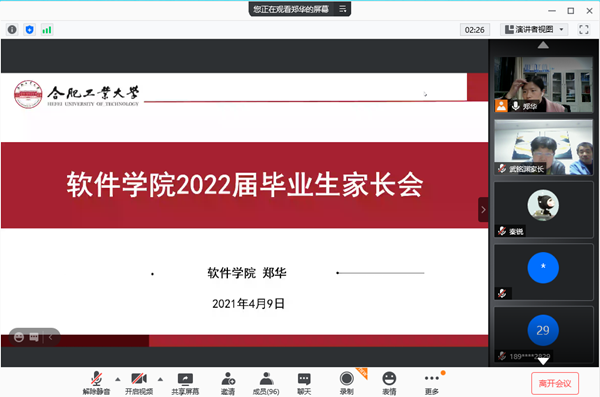 4月9日晚,beat365中文官方网站利用腾讯会议平台召开了2022届毕业生家长会。130余名学生家长参加了会议,会议由毕业生辅导员郑华主持。