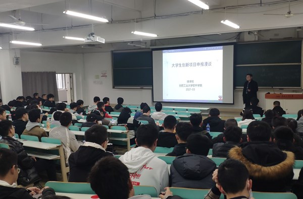 随后,2018级学生代表李闯、杨翰林同学结合个人参加项目的经历,就选题、组队、联系指导老师、项目申报书准备等方面与同学们分享了经验与做法。