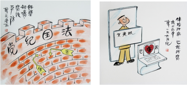 通过一幅幅简洁明了、形象生动的作品对违背党的宗旨、影响党群关系的贪腐丑恶现象进行了有力鞭挞。进一步增强党员干部对党风廉政建设的意识,营造风清气正、勇于奉献的良好工作环境,筑牢防腐拒变的思想根基。