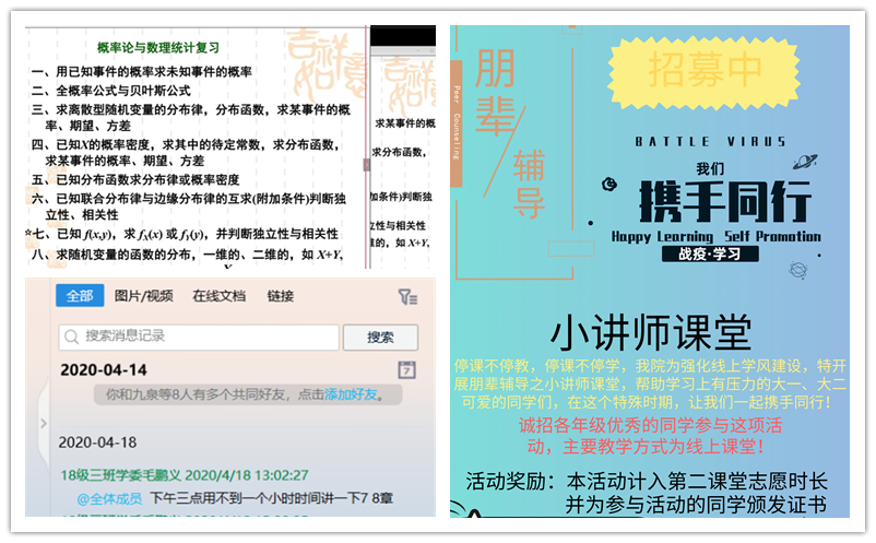 疫情期间,防控在家,为促进学风建设,坚持停课不停学,4月-5月期间,beat365中文官方网站开展了“战疫,学习,携手同行”线上学业帮扶活动,解决学生学业需求。