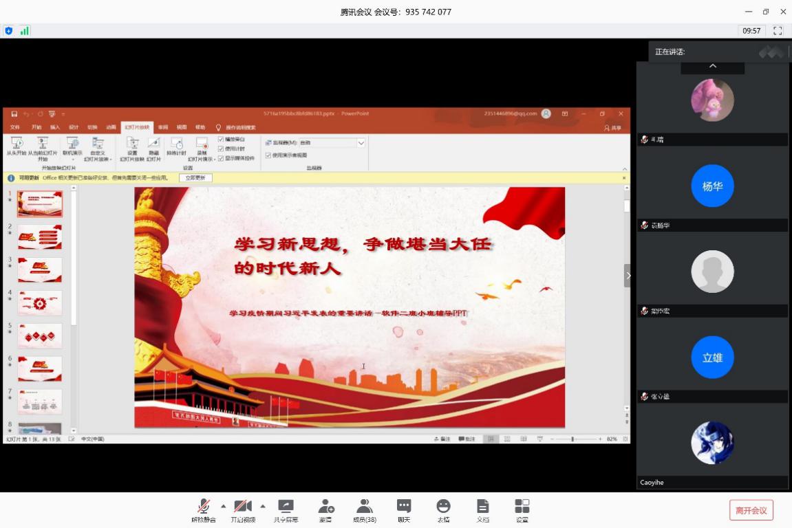 2020年4月18日星期六,为了更好的引领全体学生学习习近平总书记在疫情期间的重要讲话,持续推进习近平新时代中国特色社会主义思想入脑入心入行,激发和动员全体学生争做堪当时代的时代新人,学院2019级2班,在段林晨同学的组织下,开展了一次活动主题为“学习新思想,争做堪当大任的时代新人”的小班辅导。