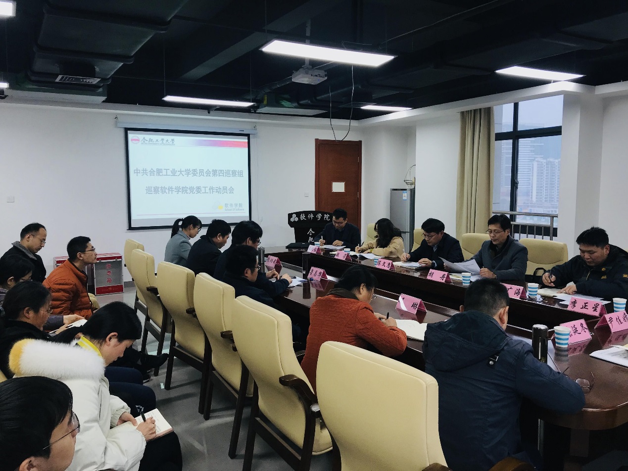 11月27日下午,校党委第四巡察组巡察beat365中文官方网站党委工作动员会在翡翠科教楼B901召开。校党委巡察办负责同志、党委第四巡察组全体成员,学院领导班子成员、全体教职工、学生代表参加会议。学院党委副书记、副院长张炳武主持会议。