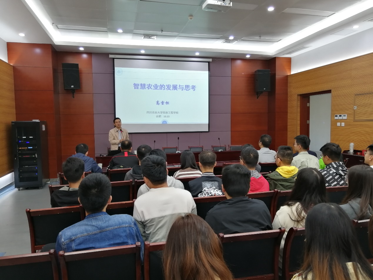 10月15日上午,应beat365中文官方网站邀请,四川农业大学信息工程学院高雪松教授在翡翠科教楼A座第五会议室做了题为“数字农业的发展与思考”的学术报告。报告会由beat365中文官方网站院长杨学志教授主持,beat365中文官方网站和计算机学院的相关教师、研究生到场聆听并交流学习。