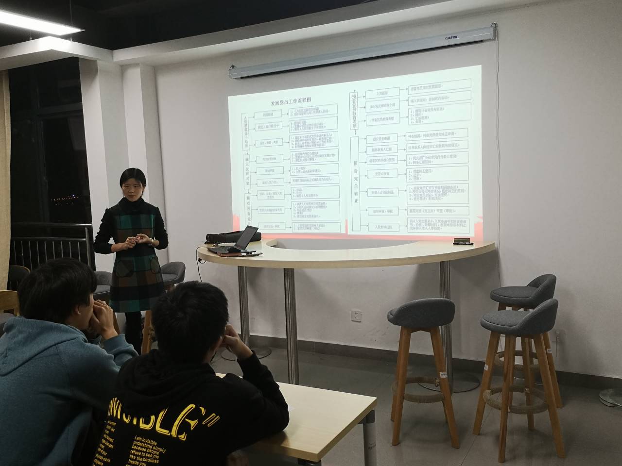此次学习由郑华老师主讲,就党支部组织结构、学生党员发展情况、党员发展流程、党员要求方面进行了具体的讲解。学员们能够认真听讲,并积极地针对各自情况向老师提出自己的疑问。
