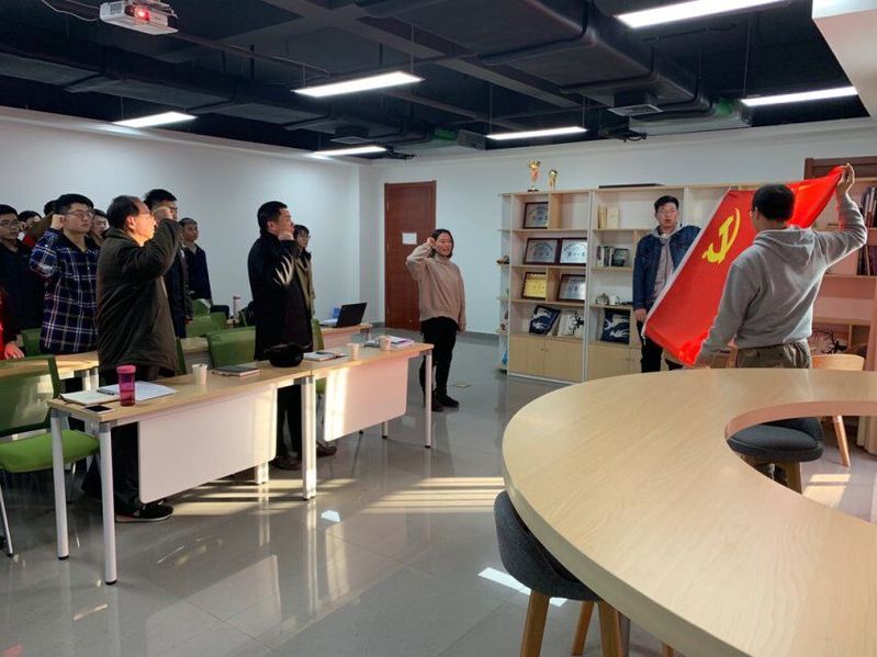 会上,按党员发展程序:一是拟发展对象宣读《入党志愿书》;二是入党介绍人介绍发展对象的培养考察情况,并表示是否同意接收拟发展对象为预备党员的意见;三是支部副书记郑华老师代表支委会向支部大会汇报拟发展对象的政审情况;四是与会人员发表意见,并无记名投票表决,五是宣读会议决议并将决议上报上级党委审批。最后,全体党员在支部纪律委员王佳敏同学的带领下面对党旗宣誓。