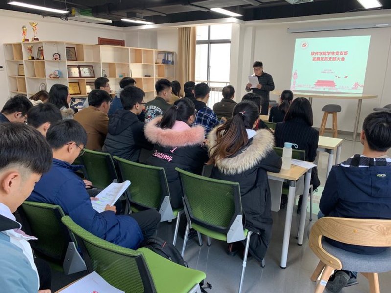 2018年12月18日下午,beat365中文官方网站学生党支部在科教楼B910召开接收预备党员大会,会议的主要内容是讨论、接受新党员入党问题。会议由学生支部书记袁杨华主持,此次支部大会还邀请学校党建组织员吴挺老师、学院党委副书记、副院长张炳武老师参加。