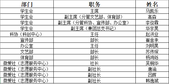 拟任新一届学生会主要学生干部名单