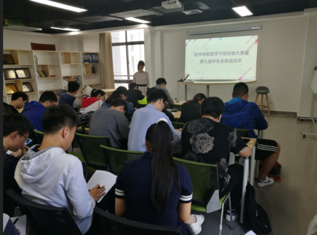 比赛由学院团委书记袁杨华、原学生会主席托合提白克·托合托逊、学生党支部委员艾成铭、往届学生干部担任评委。活动包括竞职演讲、知识测试、评委提问三个个环节。竞职演讲环节主要考察学生干部的工作规划能力、语言表达能力;知识测试环节的题目为十九大报告、高校共青团改革实施方案、团章和时事政治的节选内容,主要考察学生干部的思想理论素养;评委提问环节主要考察学生干部的灵活应变能力。袁杨华老师在活动最后进行了总结。