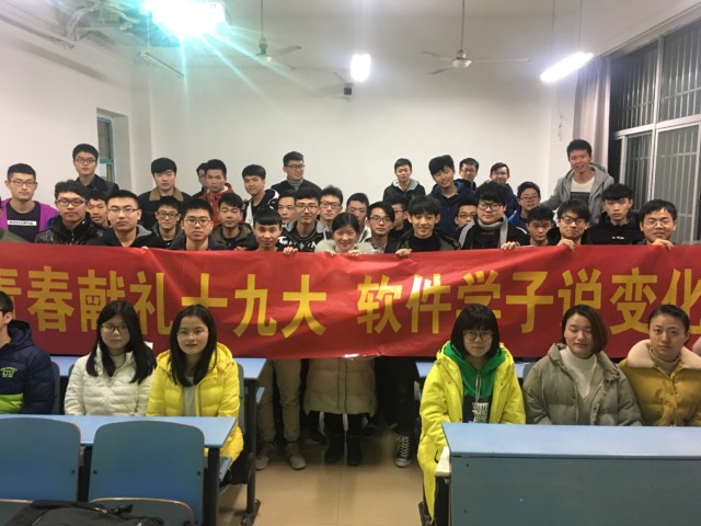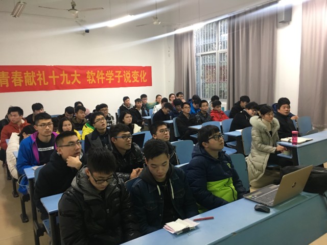 为深入学习贯彻党的十九大精神,帮助学生深刻领会习近平新时代中国特色社会主义思想的精神实质和丰富内涵,beat365中文官方网站组织2016级分班级开展“青春献礼十九大,软件学子说变化”主题班会,beat365中文官方网站党委副书记、副院长张炳武和辅导员郑华老师参加了班会。
