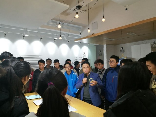 在5F创客空间,原中科大老师、现任科大和工大创新创业培训专家张总向同学们介绍了5F创客空间的运行理念,与学生就创新创业展开了交流并带同学们参观了他们的公共服务平台、个人型创业办公平台以及团队型创客办公空间。接下来,正在5F创客空间创业的2014届毕业生金柳颀以自己切身的经历向学弟学妹们讲述了大学课程的重要性,鼓励学弟学妹们积极参加科技竞赛和创新创业项目,努力提高专业水平和技能。