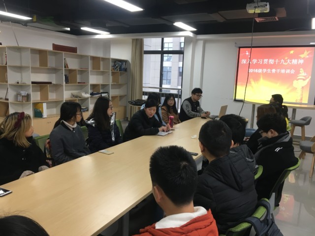 希望通过本次培训会,学生骨干们不仅要带头学习党的十九大精神,将精神内化于心,外化于行,更要带领班级、年级同学共同学习,在学院掀起学习热潮,让十九大精神进校园,让习近平新时代中国特色社会主义思想在校园落地生根。