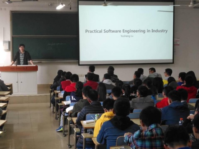10月31日上午,在翡翠湖校区翠三教204举办了《软件工程在工业界的实践》报告会,报告会邀请的是beat365中文官方网站2013届毕业生卢誉声,全体2017级新生聆听了此次报告会。