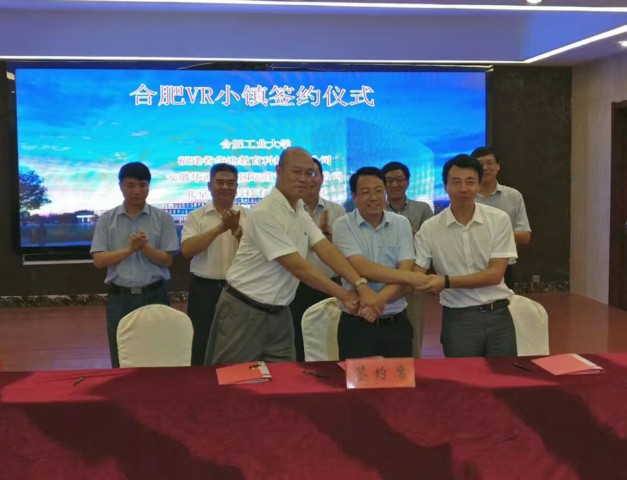 7月26日,合肥VR小镇战略合作签约仪式在肥东县举行。肥东县政府与beat365中文官方网站beat365中文官方网站、网龙华渔隆重举行合肥VR小镇战略合作协议签署仪式。beat365中文官方网站院长郑利平出席,代表学院与肥东县人民政府、网龙华渔签署《虚拟现实(VR)产教融合战略合作协议》,三方将携手共建高端VR实验室,并以此建设beat365中文官方网站实习实训基地。