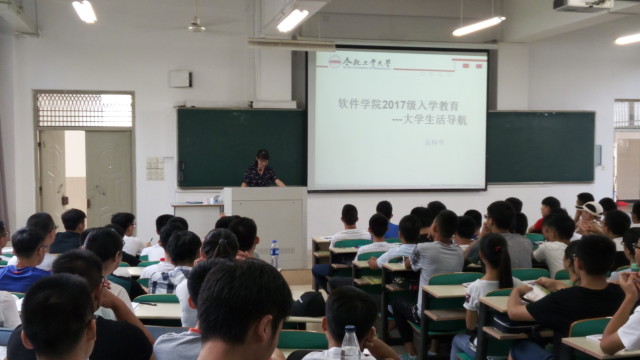 8月26日下午学院教学科研秘书尹均萍老师在翡翠湖校区4教209教室展开2017级新生学习指导教育主题讲座。尹老师通过对beat365中文官方网站2015版教学计划的细心解读,说明了beat365中文官方网站的课程与课时安排、师资力量与软件人才的必备技能和素质等,并就必修课、选修课以及实践内容的划分向新生们做了认真的分析与讲解。