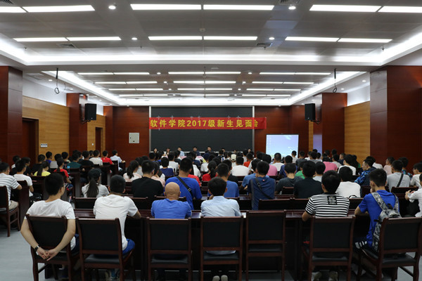 8月26日上午,学院领导班子、相关教师、全体新生于翡翠科教楼西楼第四会议室召开2017级新生见面会。学院院长郑利平老师代表学院对2017级新生的到来表示热烈的欢迎,他综合当前国家政策与社会形势,分析了软件工程专业整体的宏观发展趋势,启发新生们要向大师们学习,塑造自己成为高素质人才,希望学生们一直充满活力,积极向上。随后,院长助理徐本柱老师从beat365中文官方网站的教学计划入手,强调能力导向的一体化教学设计,勉励新生们主动学习、自主学习,在大学四年创造一幅完美篇章。