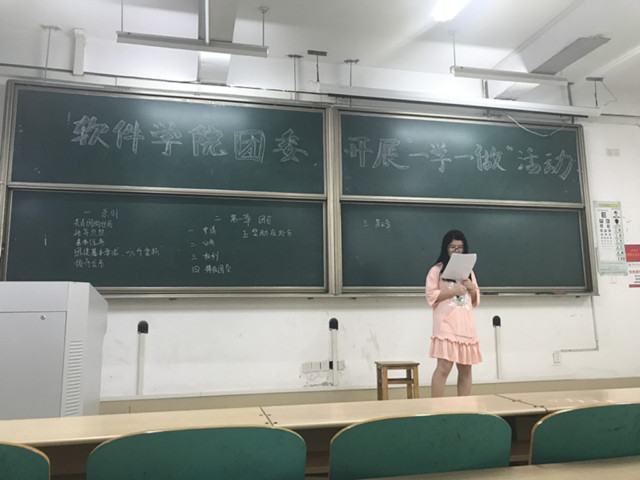 学院团委书记袁杨华老师首先结合“一学一做”教育实践活动开展,要求同学们加强了解共青团的相关知识,增强理论知识的储备并时刻保持团员的先进性和荣誉感,以高标准严要求来管理自己。随后,软件工程16-3班袁月同学向各位同学讲述了团章、团史相关内容,使同学们深刻了解了共青团员应该尽到的义务和享有的权利,明确了一名合格团员应具备的条件和准则,