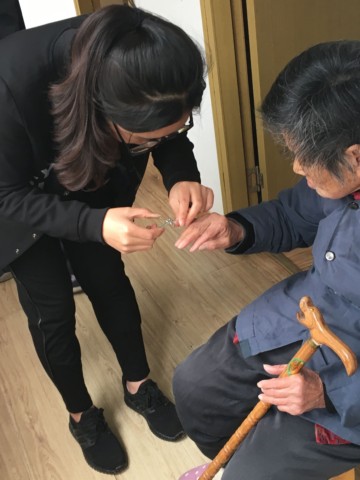志愿者们帮助老年公寓打扫卫生,帮老人们剪指甲、洗脚,在这些过程中和老人们聊聊天,听听老人们讲述自己的故事或者是给他们讲一些自己遇到的有趣的经历。在和这些老人聊天的过程中,发现这些老人就自己家里的长辈一样亲切,神情和蔼。在老年公寓生活的老人大多缺乏家人陪伴,他们有的行动不便,有的身患老年痴呆,说话行动就像小朋友一样。虽然有时候我们听不懂他们的一些话,但是可以感受到他们因有人能聆听他们的故事、他们的唠叨而发自肺腑的喜悦。
