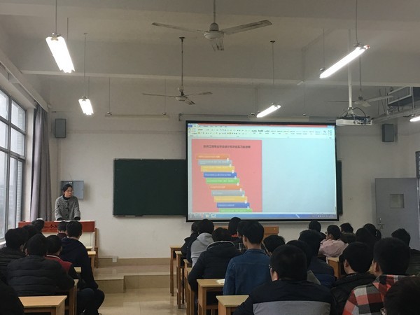 尹老师就毕业论文(设计)的重要性、具体考核办法作了解读与说明,希望学生们通过毕业实习过程,掌握新知识本领,学习综合知识。