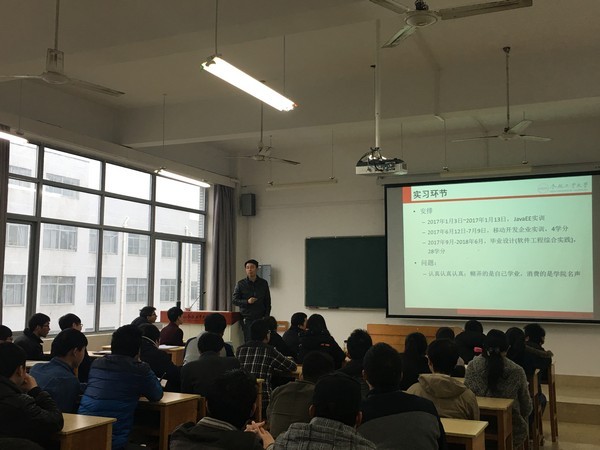 郑院长首先对如何抉择考研和就业进行分析,希望大家结合自身实际,无论是考研还是就业,同学们需要有一个明确的选择,并为此而努力。郑院长还就我校学科建设、软件学科发展进行了详细的介绍,使同学们对我校的学科更加了解,增强专业自信心。随后,他就大三之后的几项重要安排和大家说明,强调了实践的重要性。