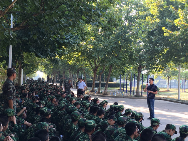 郑院长对同学们的精神面貌给予了高度的评价,肯定了同学们在高温酷暑下不怕苦、不怕累的精神。向辛勤付出的教官表示衷心的感谢,充分肯定了近期连队在各项评比中取得的优异成绩,并提出了两点希望:一是坚持就是胜利,通过军训磨练意志力、强化纪律性;二是团结就是力量,在军训中发扬一种协作的精神,互相帮助,共同进步。