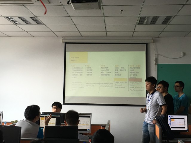 此次答辩会按项目分组逐一进行。答辩会上,各小组对本组设计的项目作品做了详细介绍并进行实际演示,各小组成员分别对自己所承担的工作进行简单陈述,并对专家组的提问进行了现场答辩。答辩组老师对每组作品进行了详细的点评和等级评定。