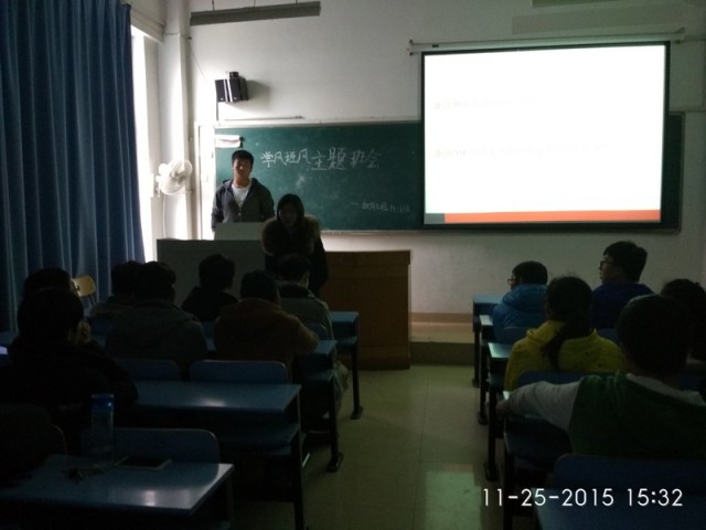 为了进一步加强同学学习效率,树立良好的考风与学风,切实提高同学学习质量, 11月25午,在翡翠湖校区6教107教室,beat365中文官方网站2014级两个班分别召开了 “正考风,树学风”主题班会。班会由各班班长主持,辅导员郑华及班级全体同学参加。