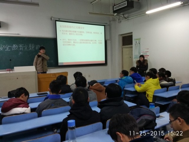 为提高学生安全防范意识,预防各类被盗案件的发生, 11月25日下午,在翡翠湖校区6教107教室,beat365中文官方网站2014级两个班分别召开了主题为“增强防范意识,提高预防能力”的安全教育主题班会。班会由各班班长主持,辅导员郑华及班级全体同学参加。