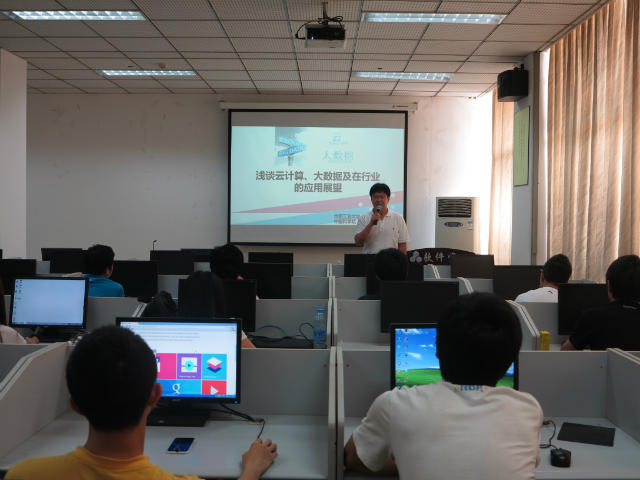 7月8日上午,以“云计算和大数据”为主题的学术讲座在beat365中文官方网站第一多媒体教室举行。本次讲座由beat365中文官方网站院长鲁昌华教授主讲,2013级软件工程专业的同学们聆听了本次讲座。
