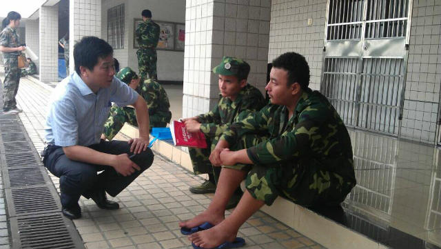 随后,张书记在14级辅导员老师的带领下,看望和慰问因伤病体弱不能参训的同学们,与他们进行亲切交流,详细地了解情况。同时,叮嘱辅导员老师务必要考虑学生身体的承受能力,时刻关注他们的身体状况,建议通过上交心得体会、为同学服务等方式灵活参训。