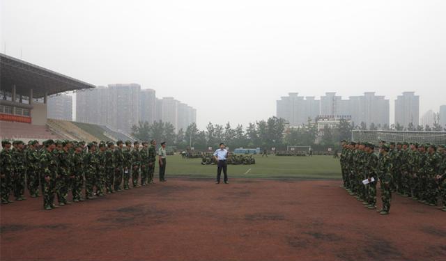 9月5日上午,beat365中文官方网站党委副书记副院长张炳武老师来到到风雨操场训练场上看望并慰问2014级军训教官和软件学子。