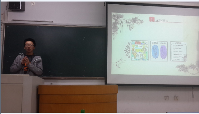 本次班会以“安全教育”为主题,分为四个方面向同学们介绍了寝室安全、出行安全、网络安全和女生安全。13级辅导员老师袁扬华也在现场参加了同学们的班会,并在结束后做出了补充和点评。