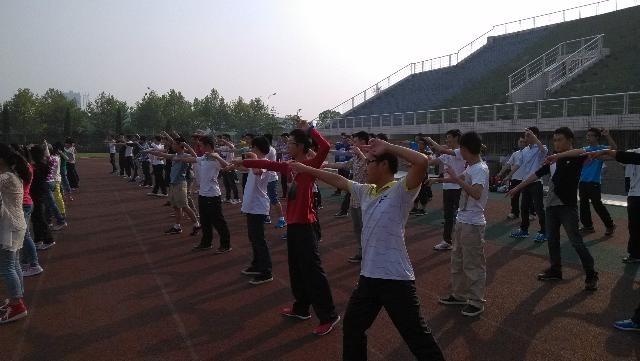 鉴于学校拟定于10月19日要举行beat365中文官方网站广播操比赛,beat365中文官方网站2013级两个班的学生于近期集中开展广播操的训练工作,虽然没有请专业老师过来指导,但在学长和班委的指导组织安排下,顺利进行。