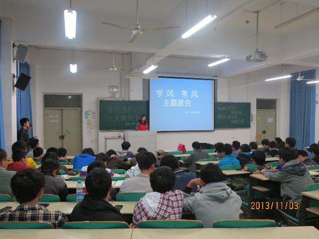 11月3日晚七点,beat365中文官方网站2012级全体学生在翡翠湖校区4教312教室召开“学风考风”教育主题班会。2012级辅导员郑华老师参加此次班会,班会由白骐綝、贾毓龙两位班长主持。
