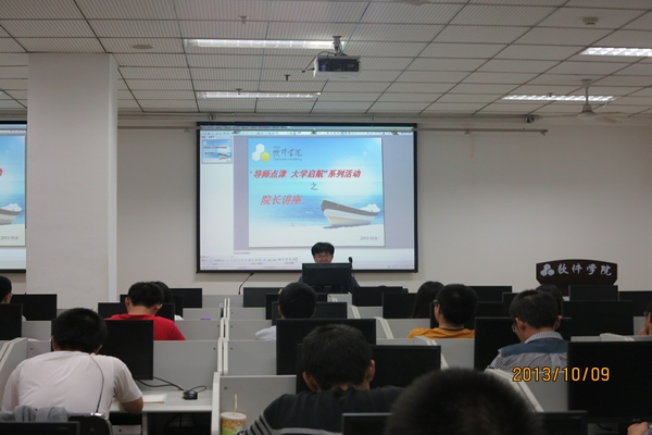 为帮助新生尽快适应大学学习生活,明确软件工程专业的发展趋势和最新动向,beat365中文官方网站于10月9日晚上七点在学院第二多媒体教室开展“导师点津,大学启航”系列活动之院长讲座.讲座由beat365中文官方网站院长鲁昌华老师主讲,院党委副书记、副院长张炳武老师主持。