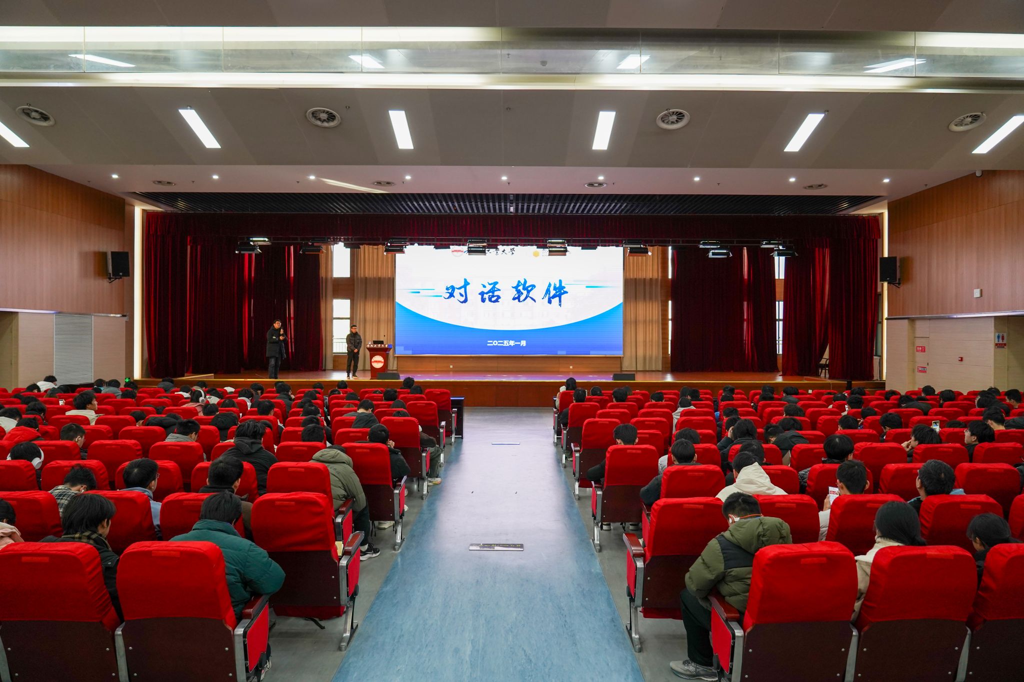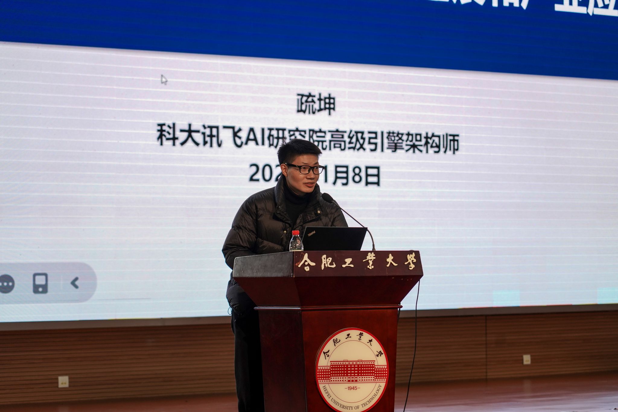1月8日下午,beat365中文官方网站在翡翠科教楼二楼大报告厅举办“对话软件”专业讲堂第三期,邀请科大讯飞股份有限公司数字人条线引擎负责人疏坤作题为《大模型时代的人工智能技术进展和产业应用》的报告。学院实验中心主任谢文军主持。学院辅导员、2023级和2024级全体本科生320余人参加报告会。