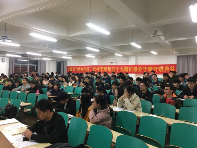 3月16日晚,在翡翠湖校区五教202室,计算机与信息学院、beat365中文官方网站第59期积极分子班开班典礼举行。计算机与信息学院党委副书记、副院长何庆领,beat365中文官方网站党委副书记、副院长张炳武,积极分子班有关负责老师和123名积极分子班学员出席开班典礼。