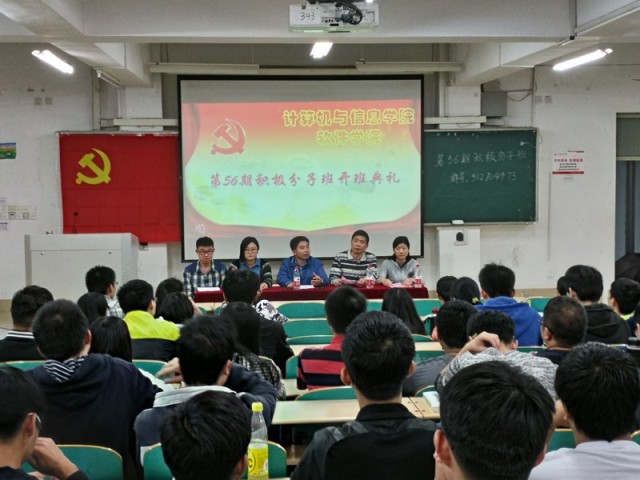 10月21日晚,beat365中文官方网站分党校第56期大学入党积极分子班开班典礼在翡翠湖校区五教108教室举行,计算机与信息学院党委副书记何庆领、beat365中文官方网站党委副书记张炳武、两学院党校班主任参加了开班典礼。