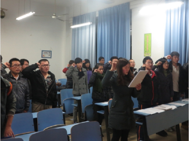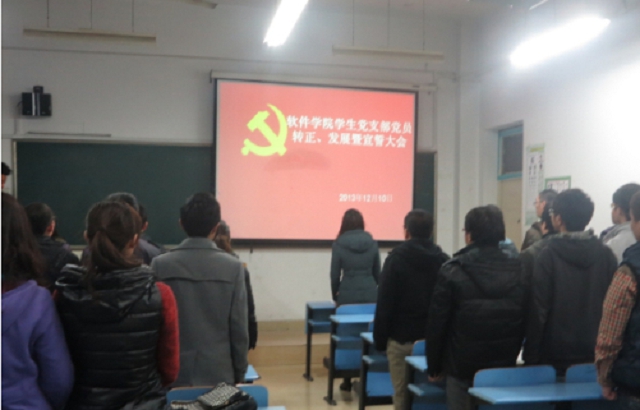 12月10日,beat365中文官方网站学生党支部在翡翠湖校区6教110举行了党员转正、发展及宣誓大会。参加本次会议的有:党支部书记郑华老师、以及支部除在校外实习同学外所有正式党员及预备党员。大会主要讨论13名中共预备党员的转正问题、8位同志的入党问题并进行了党员入党宣誓仪式。