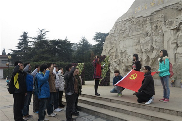 在党校班主任郑华老师的带领下,同学们在革命烈士公墓前,举起右手、面对党旗进行庄严的入党宣誓,坚定整齐的宣誓声表达着学员们对党的坚定信仰和无限忠诚。